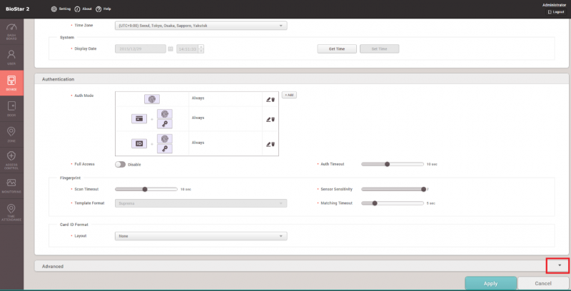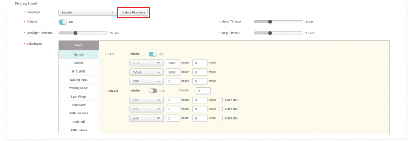Old revisions Add to book Export to PDF Fold/unfold all Table of Contents How to Upgrade the Resource Firmware for BioLite Net V2 Overview Preparations Start BioStar 2 and update the resource firmware Book Creator Add this page to your book Book Creator Remove this page from your book Manage book (0 page(s)) Help BioStar 2, BioLite Net, resource How to Upgrade the Resource Firmware for BioLite Net V2 Overview Sometimes if you complete the device firmware update for the BioLite Net v2, the device menu and its associated string item does not correspond to each other. This problem can be introduced when the firmware update presented some enhancement/modification in the device functionality/menu items and the existing resource firmware do not reflect the changes. In this case, you also have to upgrade the resource firmware to maintain the up-to-date status. Preparations 1. Make sure you have the resource firmware placed in the path C:\Program Files (x86)\BioStar 2\resource. 2. Have a BioLite Net device added on the BioStar 2. Start BioStar 2 and update the resource firmware 1. Start BioStar2 client and log in. 2. Go to DEVICE and click the BioLite Net device that you want to update its resource firmware. 3. Expand the Advanced tab and locate the Display/Sound section. 4. Please click Update Resource button next to the Language menu item. 5. On Language Resource window, please select the appropriate Resource file to update the device resource. 6. Please verify that the device menu item and its associated string corresponds to each other.