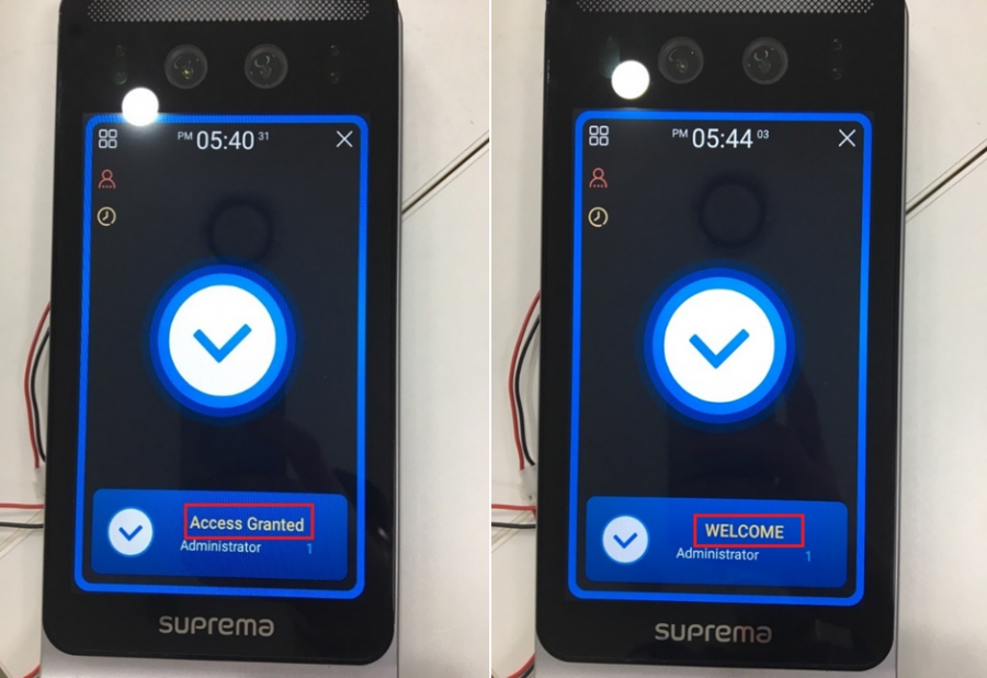 Old revisions Add to book Export to PDF Fold/unfold all Book Creator Add this page to your book Book Creator Remove this page from your book Manage book (0 page(s)) Help This is an old revision of the document! BioStar 2, device, text Changing the Device Text Message (English) [Before updating the resource file / After updating the resource file] It is possible to customize languages, or to change the message displayed on the device by configuring the device’s resource file. Follow the steps below to change the texts displayed on the device (Facestation F2). How to set up? 1. Download the Resource file zip folder that matches the device at [BioStar 2] Changing the Device Language (Translation) and unzip the zip folder. 2. Download the Resource Tool. It is located inside the latest resource file. 3. Open ResourceTool_IncludeFSF2.exe and run as administrator. 4. Press Open and choose the relevant resource inside the Resource file that fits the device. Select All file to search the resource file. Make sure that the device and the resource file’s firmware match. 5. Fill out the information at TagWrite (Firmware Version, Device Type, Card Type). Note that the DeviceType must match to read resources at BioStar 2. 6. Change the text under Resource Table for text customization displayed on the device by editing here directly. 7. The edited information can be saved by pressing Save. Make sure to save the files in Resource file format (.rc). Changing Language Display at English Setting While the device language is set at English, I will customize the “Access Granted” window to show “WELCOME” instead. Here is a demonstration of changing the resource to display a different value from the default. 1. Find the English section at the Resource Table. 2. Find “Access Granted” and double click to edit. Change to “WELCOME.” 3. Press Build. A .bin file will be created at the location of the Resource Tool. I will rename the file to FSF2_RES_WELCOME. 4. Copy the .bin to <Program Files → BioStar 2(x64) → resource>. Continue with administrator permission. 5. Login to BioStar 2. 6. Go to Device and choose the device to customize. 7. Go to Advanced → Display/Sound. Press Update Resources. If successful, this message will appear. 9. The device will reset after applying the resource file. Check to see if the customization is applied on the device through authentication. changing_the_device_language_or_device_text_message_english_.mp4