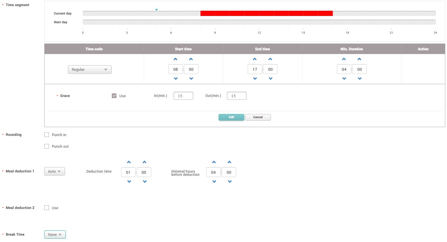 • Grace: Employees have 15 minutes grace when checking IN and checking OUT