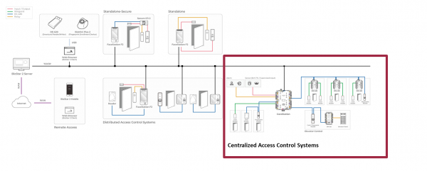 Old revisions Add to book Export to PDF Fold/unfold all Table of Contents BioStar 2 Distributed System What is distributed system? What is Centralized system? Distributed vs Centralized System Book Creator Add this page to your book Book Creator Remove this page from your book Manage book (0 page(s)) Help This is an old revision of the document! Fundamental Course, BioStar 2 BioStar 2 Distributed System What is distributed system? BioStar 2 adopted a distributed access control system, which gives a device the intelligence to make a logical decision with user credential data that is stored in the device. With this system topology, devices are communicated through TCP/IP to their local server, and RS485 serial communication is used in the lower-level communication between a master and a slave device. The benefit of this system topology is that it allows Suprema biometric devices (intelligent reader/controller called edge devices) to communicate with a server rapidly without delay, which is often found with the RS485 serial interface in biometric data transmission. This is because a bio-metric data size is much larger than a simple card serial number, and it’s necessary to send more than thousands of byte data size when many number of users are transferred to devices at the same time. So, it’s more efficient and effective to use a TCP/IP-based distributed access control system for biometric data management and system operation. What is Centralized system? A centralized system is based on access control units (ACU). Suprema’s centralized system not only provides the benefits of biometrics, but it also provides enhanced security and excellent system scalability. In addition, the centralized system also enables you to upgrade your existing systems at a lower installation cost. Integrated with BioStar 2, this system safely stores all information about each user, including the user’s name, ID, PIN, access rights, and fingerprint data, by storing it on a single device. Distributed vs Centralized System The distributed access control system has the pros and cons below compared to its counterpart, centralized system. However, as IP related system technologies have been improved radically, distributed access control system also overcame its limitation and was established as a main stream, especially in the small-to-medium business market. Also, the distributed system provides alternative solutions to make up pointed weaknesses.