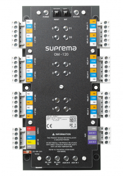 OM-120は12リレー出力制御モジュールです。 BioStar 2と一緒に使用すると、エレベータから選択したフロアへのアクセスを制御できます。