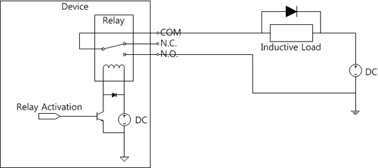 이전 판 책에 추가 PDF로 내보내기 Fold/unfold all 목차 올바른 릴레이 연결 방법 일반적인 연결도 역전류 방지 함께 보기 책 생성기 내 책으로 이 페이지 추가 책 생성기 내 책에서 이 페이지 제거 책 관리 (0 페이지) 도움말 Relay 올바른 릴레이 연결 방법 릴레이는 전기 회로의 개폐를 다른 전기 회로의 전류, 전압, 주파수 등의 변화에 따라 자동으로 실행하는 제어 기기이며, 적은 전력으로 전기 신호를 제어할 때 범용적으로 사용합니다. 출입 통제 시스템에서 릴레이는 전기정, 잠금 장치, 알람 신호를 제어하는 주요 스위치로 사용되며 잘못된 릴레이 연결은 릴레이 수명을 단축시키거나 오작동의 원인이 될 수 있습니다. 이 문서는 출입 통제 장치를 구성할 때 사용하는 일반적인 릴레이 구성 방법에 대해 설명합니다. 일반적인 연결도 릴레이의 일반적인 연결도는 아래 그림과 같습니다. 동작 신호가 릴레이에 전달되면 스위치 상태가 변경되면서 부하(Load)는 외부 DC 전력으로부터 전력을 공급받습니다. 역전류 방지 전기정과 같이 유도성 부하(Inductive loads)를 사용할 때는 역전류에 주의해야 합니다. 릴레이에 의해 회로가 단락될 때(유도성 부하를 끊을 때) 정상의 약 10배 정도의 역기전력을 발생하며, 역기전압이 200V를 넘으면 글로우 또는 아크 방전이 발생하여 릴레이 내부 접점이 파괴되거나 장치 수명의 단축, 비정상적인 전자기장 발생, 장치의 안정성을 손상시키는 원인이 됩니다. 이를 방지하기 위해 회로에 보호 장치가 필요하며, 아래 그림과 같이 다이오드를 유도성 부하 단자에 연결해야 합니다. 함께 보기 릴레이