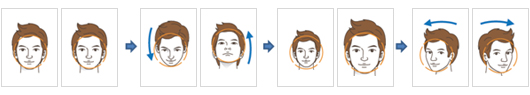 먼저 정면 얼굴 템플릿을 등록한 뒤 위/아래로 이동, 가까이/멀리, 왼쪽/오른쪽으로 회전하며 얼굴 템플릿을 등록합니다. 이렇게 등록된 템플릿은 사용자의 얼굴 각도에 따라 변화하는 얼굴의 변화를 FaceStation이 잘 인식할 수 있도록 합니다.