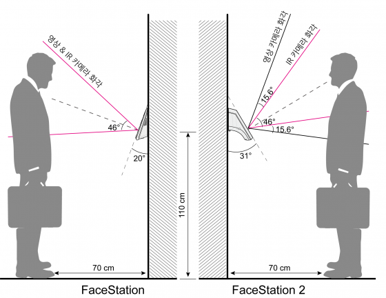 이전 판 책에 추가 PDF로 내보내기 Fold/unfold all 목차 FaceStation 2 | 당신의 얼굴이 바로 열쇠입니다 주변 환경의 밝기에 따라 제어되는 NIR LED와 향상된 얼굴 인증 기술 편의성을 고려한 디자인 1.4 GHz 쿼드 코어를 이용한 놀라운 인증 성능 멀티 RFID 기술로 다양한 카드를 한 번에 SIP 기반 VoIP 비디오폰 위조 얼굴 감지 기술 (Live Face Detection) 책 생성기 내 책으로 이 페이지 추가 책 생성기 내 책에서 이 페이지 제거 책 관리 (0 페이지) 도움말 FaceStation 2 | 당신의 얼굴이 바로 열쇠입니다 얼굴은 사람과 사람 사이에서 개인을 구별할 수 있는 가장 쉬운 방법입니다. 갓난아이조차 태어난 뒤 며칠 뒤에는 엄마의 얼굴을 알아볼 수 있으며, 우리는 걷는 동작, 목소리, 키와 같은 요소보다 얼굴로 사람을 구별하는 것이 자연스럽습니다. 바이오인증 시스템은 지문, 얼굴, 홍채, 정맥과 같은 신체 특징을 크리덴셜로 사용합니다. 그 중 얼굴 인증 장치는 사람의 얼굴을 크리덴셜로 사용하기 때문에 사람과 가장 가깝게 느껴지며 거부감이 없습니다. 얼굴 인증은 가장 널리 사용되는 지문 인식 장치와 다르게 별도의 광학 센서가 필요하지 않습니다. 카메라만으로 개인을 식별할 수 있으며 센서와 접촉할 필요도 없습니다. 하지만, 얼굴 인증 장치는 IR 기술을 사용하기 때문에 건물 외부나 주변 광이 밝은 창문 근처에서 사용하기 어려웠습니다. FaceStation 2는 이런 제약 사항을 뛰어넘은 새로운 장치입니다. Android 5.0 Lollipop을 기반으로 슈프리마의 최신 알고리즘, 하드웨어, 소프트웨어가 모두 결합된 출입통제 및 근태관리 장치이며, 다양한 기능과 향상된 성능으로 비접촉식 인증의 새로운 경험을 제공할 것입니다. 주변 환경의 밝기에 따라 제어되는 NIR LED와 향상된 얼굴 인증 기술 얼굴 인증 장치에서 가장 중요한 부분은 주변 광의 처리 방법입니다. 기존의 제품들은 주변 광의 밝기에 따라 얼굴 인증 성능이 좌우되기 때문에 설치 위치에 제약이 많았습니다. FaceStation 2는 주변 광의 조도에 따라 효과적으로 제어되는 80 개의 광각 근적외선(Wide angle NIR) LED와 60 개의 협각 근적외선 (Narrow angle NIR) LED를 이용하여 25,000 Lux에서도 얼굴을 인식할 수 있습니다. 25,000 Lux는 직사광선이 닿지 않은 한낮의 최대 조도를 나타냅니다. 즉, 장치를 창문 근처, 로비, 건물 출입문에도 설치할 수 있습니다. 또한, FaceStation 2는 3차원 픽셀 강도 분포 분석을 사용합니다. NIR LED 조명 기술을 사용할 때 가장 문제가 되는 것은 주변 광의 영향입니다. 주변 광은 적외선을 포함하기 때문에 NIR LED 조명을 무용지물로 만들 수 있으며, 주변 광의 각도에 따라 발생하는 얼굴의 그림자 때문에 알고리즘이 얼굴의 특징점을 파악하기 어려울 수 있습니다. 3차원 픽셀 강도 분포 분석 기술을 이용하면 얼굴 이미지를 획득할 때 발생하는 주변 광의 영향을 최소화하여 명암 대비가 균일한 근적외선 이미지를 얻을 수 있습니다. 균일한 명암을 가진 이미지는 너무 밝거나 너무 어두운 이미지보다 얼굴의 형태를 파악하기 쉽기 때문에 특징점을 더 다양하게 추출하여 높은 품질의 얼굴 템플릿을 얻을 수 있습니다. 높은 품질의 얼굴 템플릿은 인증 성능을 높이는 중요한 요소입니다. 편의성을 고려한 디자인 FaceStation 2는 키가 큰 사용자도 허리를 덜 구부리도록 제품의 외관 각도와 카메라의 각도를 조절했습니다. 또한, 영상 카메라와 IR 카메라의 화각이 다르게 설정되어 있으며, 이것은 장치의 화면을 통해 사용자가 올바른 위치에서 인증을 할 수 있도록 도와줍니다. [FaceStation과 FaceStation 2의 인증 각도 비교] 1.4 GHz 쿼드 코어를 이용한 놀라운 인증 성능 FaceStation 2는 향상된 얼굴 템플릿 추출 기술과 1.4 GHz 쿼드 코어를 사용하여 놀라운 인증 속도를 보여줍니다. 1:N 인증은 1 초에 3,000 개 템플릿까지 가능하며, ‘그룹 매칭’을 이용하면 1:N 인증이 1 초에 30,000 개 템플릿까지 가능합니다. 멀티 RFID 기술로 다양한 카드를 한 번에 FaceStation 2는 멀티 RFID 기술이 내장되어 있어서 125 kHz 카드와 13.56 MHz 카드를 함께 사용할 수 있습니다. 이 때문에 오랫동안 사용하던 EM, HID Prox 카드와 스마트 카드(MIFARE, DESFire, FeliCa, iCLASS)를 동시에 사용할 수 있습니다. 이것은 장치를 교체하지 않고 향상된 보안 구조를 가진 스마트 카드를 더 쉽게 사용할 수 있도록 도와줍니다. 또한, NFC와 BLE (Bluetooth Low Energy)도 지원합니다. SIP 기반 VoIP 비디오폰 FaceStation 2는 비디오폰을 추가로 설치할 필요가 없습니다. 세션 개시 프로토콜(SIP)을 지원하는 환경에서 FaceStation 2를 비디오폰으로 사용할 수 있습니다. 위조 얼굴 감지 기술 (Live Face Detection) FaceStation 2는 듀얼 카메라 시스템과 지능형 학습 기반 알고리즘을 기반으로 실제 사진과 IR 이미지를 분석합니다. 하드웨어에 의존하는 방식(안면 열상 인식, 얼굴 정맥 인식 등)은 고가의 하드웨어 장치를 필요로 하며, 슈프리마의 알고리즘 기반 방식보다 정확성이나 인증 속도가 떨어집니다. 슈프리마의 위조 얼굴 감지 기술은 출입 통제 및 근태 관리를 위한 이상적인 정확성과 속도를 사용자에게 제공합니다.