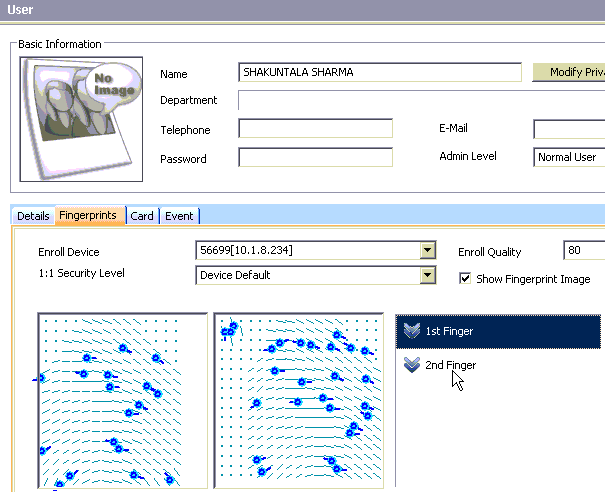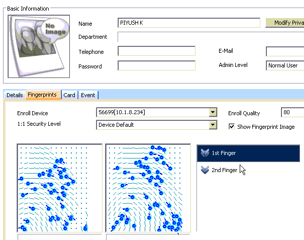 Old revisions Add to book Export to PDF Fold/unfold all Table of Contents How to resolve False Rejection Issue Why false rejection occurs Analyzing false rejection issue Fingerprint re-enrollment Book Creator Add this page to your book Book Creator Remove this page from your book Manage book (0 page(s)) Help This is an old revision of the document! BioStar 1, FRR How to resolve False Rejection Issue In this document, we would like to introduce how to resolve false rejection issue. Why false rejection occurs When there are numerous number of “Identify Fail” logs, it is highly that users’ fingerprint quality is low or the users did not place his/her finger correctly on the sensor. Below is an example of users who are experiencing “Identify Fail”. When there is a false rejection issue after adjusting the security level to solve a false acceptance issue, users should re-enroll their fingerprints. Analyzing false rejection issue Open BioStar Client and go to [Monitoring] menu. Select the date and device where false rejection happens. As shown below, there are numerous number of “Identify Fail” logs. From this log, we can assume that these users tried multiple times to get “Identify Success”. Look for the user ID who is experiencing “Identify Fail” more than three times. Now, move to [User] menu and search the user ID. It is important to check the fingerprint quality. When the location of the templates is different between each template, users should enroll their fingerprint again. Please see the below examples. [Example 1] [Example 2] When there are few number of minutiae (check the number of blue circles), users should enroll their fingerprint again. Alternatively, they can enroll other fingers. Please see below examples. [Example 3] [Example 4] The below example is another bad fingerprint template. This kind of template is created when users only place their fingertips. In this case, users should enroll their fingerprints again. Fingerprint re-enrollment When you try to enroll the fingerprints again, please follow the steps below. 1. Click Delete button to delete previously enrolled fingerprint. 2. Set Enroll Quality to 80 (Strong). 3. Click Add then click Scan to scan your fingerprint. 4. When you have Too low quality error, please try again with different finger. When fingerprint is small or dry, the templates quality may low. 5. Transfer the user to the device and run a test.