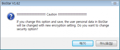 Old revisions Add to book Export to PDF Fold/unfold all Table of Contents How to secure the device and user information Lock All Devices Fingerprint Encryption Personal Information Encryption This is an old revision of the document! BioStar 1, Encryption How to secure the device and user information There are three different methods to secure the device and user information in BioStar. 1. Lock All Devices 2. Personal Information Encryption 3. Fingerprint Encryption Lock All Devices Lock All Devices feature allows the devices to be protected from unauthorized access when BioStar Client is not running. There is possibility that unauthorized users to manipulate the device settings when maximum number of connection is set to more than one on the devices. Lock All Devices feature will minimize the risk of unauthorized access. Lock All Devices feature is not supported when the devices are connected directly to server. To lock connected devices: 1. Go to Option > Device > Lock All Devices. To unlock connected devices: 1. Go to Option > Device > Unlock All Devices. 2. Enter the password then click OK. (If you have not created password, simply click OK.) No default password assigned when using for the first time. Follow the steps below to create a password: 1. Go to Option > Device > Automatic Locking. 2. Enter the new password then click OK. 3. Please refer to How to unlock a device using Challenge code, if you have forgotten your password. It is not possible to assign new password to BioStation, BioStation T2, FaceStation and D-Station devices. Please use the master password to lock/unlock the devices. Fingerprint Encryption Using AES Algorithm, all Suprema devices store encrypted fingerprint templates within the device. When the templates are transferred to BioStar Server, original templates are transferred without encryption. Therefore, BioStar supports Fingerprint Encryption feature which allows BioStar Client to encrypt fingerprint templates using encryption key for higher security and privacy. To encrypt fingerprint templates in BioStar: 1. Go to Option > Fingerprint > Use Fingerprint Template Encryption. 2. Click Yes to acknowledge the warning statement. 3. Enter the new encryption key and click Change. Encryption keys are not necessary and any combination of letters, numbers and special characters up to 32 characters are supported as the encryption key. 4. Click Change to close the windows then click Save to save changes. It is not possible to reproduce a fingerprint image from the templates even the fingerprint encryption is not turned on. Personal Information Encryption Using AES Algorithm, BioStar also supports Personal Information Encryption feature which allows BioStar to encrypt the confidential user information. This helps to protect valuable private user data against crimes. To encrypt personal information in BioStar: 1. Go to Option > User > Personal Information Encryption. 2. Click Yes to acknowledge the warning statement. 3. Enter the new encryption key and click Change. Encryption keys are not necessary and any combination of letters, numbers and special characters up to 32 characters are supported as the encryption key. 4. Click Change to close the windows then click Save to save changes.