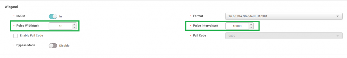 Old revisions Add to book Export to PDF Fold/unfold all Table of Contents How to Troubleshoot Wiegand Output Issues Issue Cause Procedure Book Creator Add this page to your book Book Creator Remove this page from your book Manage book (0 page(s)) Help FAQ, BioStar 2, Wiegand How to Troubleshoot Wiegand Output Issues Issue 1. You are using Suprema devices as Wiegand readers for a 3rd party controller and the controller is not receiving any signal from the Suprema device. 2. A signal is being sent to the controller only when authentication succeeds, but you need the device to send the card number regardless of match success. In BioStar 2 you can only output the card ID. You cannot output the User ID like BioStar 1. Hence each user needs to have a card assigned. If you don't have a physical card, you can assign one manually. Cause 1. The Pulse Width and interval has to match the controller. 2. Bypass mode is disabled. Procedure 1. Check the pulse interval and width of the 3rd party controller. Please contact the technical support team of the 3rd party controller if you do not know the pulse interval and width. 2. Set up the pulse width and pulse interval accordingly. 3. Since the suprema device is sending the signal out to the controller, the Wiegand signal should be set to *Out*. If the device should act as a dummy reader (card number should be sent and no matching is done), bypass mode should be enabled. Wiegand format does not have to be configured with Bypass Mode. 4. Check that you have selected the correct Wiegand format and click apply. If you need to set a custom Wiegand format refer to the following link for more details: How to configure Wiegand Output
