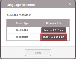 Old revisions Add to book Export to PDF Fold/unfold all Table of Contents How to Upgrade the Resource Firmware for BioLite Net V2 Overview Preparations Start BioStar 2 and update the resource firmware Book Creator Add this page to your book Book Creator Remove this page from your book Manage book (0 page(s)) Help BioStar 2, BioLite Net, resource How to Upgrade the Resource Firmware for BioLite Net V2 Overview Sometimes if you complete the device firmware update for the BioLite Net v2, the device menu and its associated string item does not correspond to each other. This problem can be introduced when the firmware update presented some enhancement/modification in the device functionality/menu items and the existing resource firmware do not reflect the changes. In this case, you also have to upgrade the resource firmware to maintain the up-to-date status. Preparations 1. Make sure you have the resource firmware placed in the path C:\Program Files (x86)\BioStar 2\resource. 2. Have a BioLite Net device added on the BioStar 2. Start BioStar 2 and update the resource firmware 1. Start BioStar2 client and log in. 2. Go to DEVICE and click the BioLite Net device that you want to update its resource firmware. 3. Expand the Advanced tab and locate the Display/Sound section. 4. Please click Update Resource button next to the Language menu item. 5. On Language Resource window, please select the appropriate Resource file to update the device resource. 6. Please verify that the device menu item and its associated string corresponds to each other.