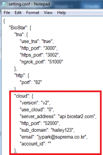 4. Modify setting values(version, use_cloud, account_id) in the cloud section like below screenshot.