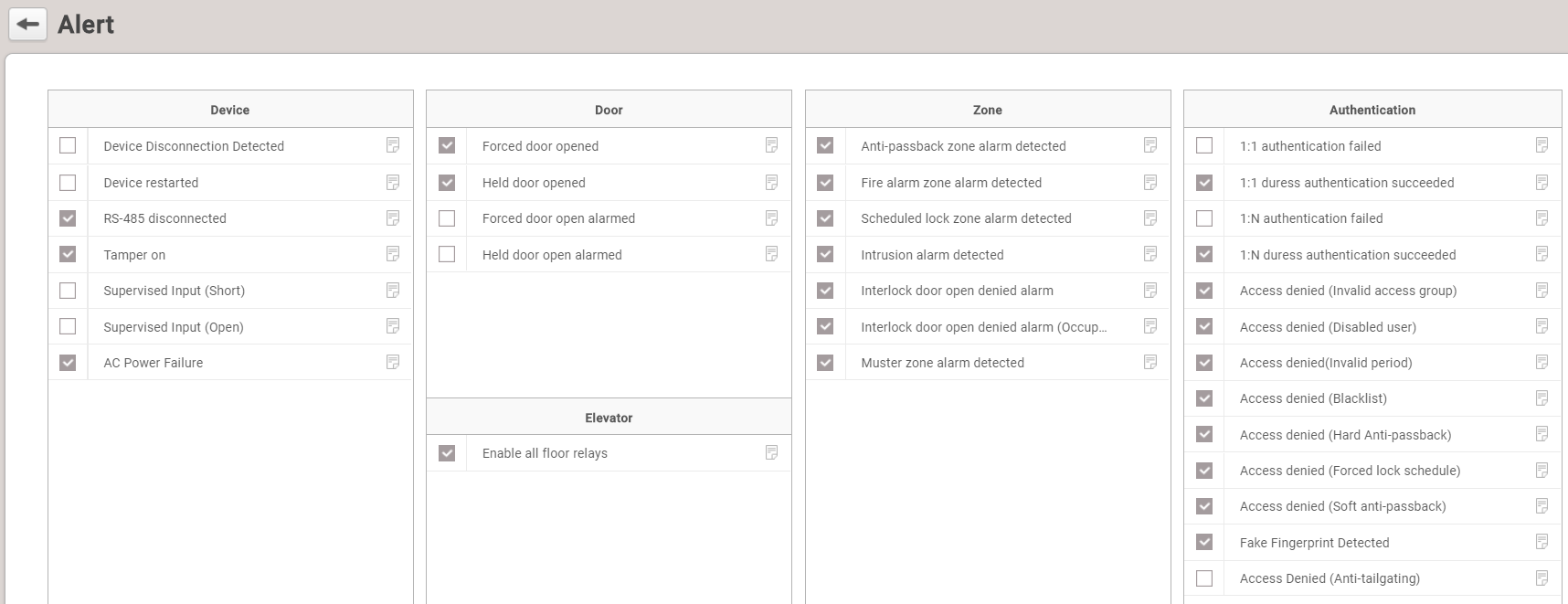 [Alert Configuration of BioStar2]