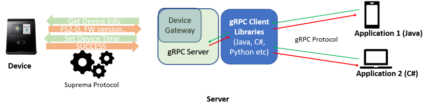 Old revisions Add to book Export to PDF Fold/unfold all Table of Contents Possible Integration Option 3 : G-SDK What is G-SDK? How G-SDK works? What is different from BioStar 2 Device SDK? What are the next features? Summary of G-SDK Book Creator Add this page to your book Book Creator Remove this page from your book Manage book (0 page(s)) Help Possible Integration Option 3 : G-SDK In addition to the integration method using BioStar2 SW API or BioStar2 Device SDK, G-SDK is recently released as a new integration option for device management, user management, and log management. What is G-SDK? G-SDK is one of the integration options for communicating with BioStar 2 devices. It is a lightweight, scalable, and cross-platform solution which will expedite your development. How G-SDK works? [Figure 1. G-SDK architecture] G-SDK consists of Device Gateway in gRPC Server and gRPC Client Libraries. Based on gRPC, it supports many programming languages such as Java, C#, Python, Node.js, Go, etc. (gRPC (gRPC Remote Procedure Calls) is an open source remote procedure call (RPC) system initially developed at Google in 2015.) Multi-language support Language-neutral IDL Native client libraries Device Gateway that communicates with BioStar 2 device can be run on a server or cloud. Core modules use BioStar 2 protocols and written by GO language. [Figure 2. Device Gateway Structure] What is different from BioStar 2 Device SDK? Existing BioStar 2 Device SDK provides C++ library with C#. G-SDK is released to provide flexible development for those who would like to meet the requirements below. Let's take a look for an easy comparison between BioStar 2 Device SDK and G-SDK. [Figure 3. BioStar 2 Device SDK vs G-SDK] One of the biggest advantages of G-SDK compare to Device SDK is that it supports various languages. For the last years, Device SDK users have had difficulty using development language other than C++ or C# which is in the sample code. Since BioStar 2 Device SDK can communicate with C++ library, you have to use C++ language or need to marshall all the APIs and structures in the library into other languages. Currently BioStar 2 Device SDK provides only C# marshalling sample. This is a limitation of BioStar 2 Device SDK due to the structure. [Figure 4. BioStar 2 Device SDK structure] How G-SDK can support so many languages? It is because G-SDK is based on gRPC. gRPC is an open RPC framework that supports many languages developed by Google. Basically, the device gateway is the one that communicates with BioStar 2 device. Your client applications can connect to it using gRPC client libraries. [Figure 5. G-SDK structure] What are the next features? 1. Master Gateway G-SDK can support up to 1000 device connections with a Device gateway. Currently, Master gateway that will support up to 100,000 device connections is under development. Master Gateway helps you handle multiple Device gateways and it can be deployed on a cloud server or provide mobile direct accessibility too. [Figure 6. Device Gateway vs Master Gateway] 2. Advanced AC API G-SDK doesn't support advanced AC such as Zone, Wiegand or RS485 but it supports only simple configurations & features. In the future, G-SDK will support all the APIs that are supported in the BioStar 2 Device SDK : Zone, Wiegand, RS485, etc. 3. More language support samples G-SDK provides C#, Java, Python, Go and Node samples. Furthermore, G-SDK is planning to support Android, iOS, Ruby samples. Summary of G-SDK Supported OS Windows, x86/Arm Linux, Mac OS Recommended Requirements 2.0GHz CPU, 4GB(32bit) or 8GB(64bit) RAM Minimum Requirements 1.0GHz CPU, 1GB(32bit) or 2GB(64bit) RAM Maximum number of devices Up to 1,000 Supported Language C++, Java, Python, Go, Ruby, C#, Node.js, Android Java, Objective-C, PHP, Web Supported API The basic AC APIs(Access control, User management, Event log etc) except advanced features such as Zone, Wiegand, RS485 features. Supported Device All BioStar 2 devices Download https://github.com/biostar-dev/g-sdk/releases Manual https://biostar-dev.github.io/g-sdk/