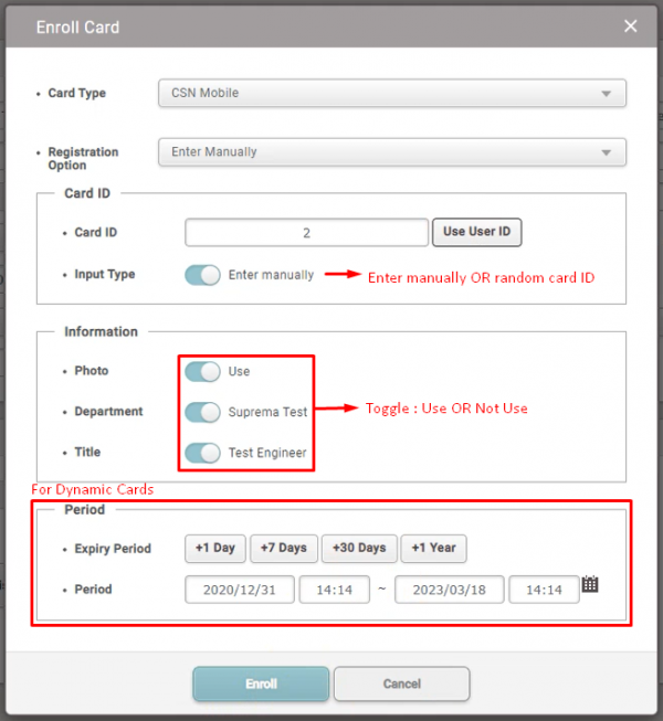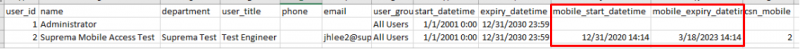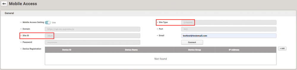 Old revisions Add to book Export to PDF Fold/unfold all Book Creator Add this page to your book Book Creator Remove this page from your book Manage book (0 page(s)) Help This is an old revision of the document! Supports Dynamic Site Configuration Suprema officially supports Suprema Mobile Access Dynamic Site from BioStar 2.8.9. Dynamic Site Policy Dynamic Site allows you to reissue, revoke, or stop mobile access cards or specify the expiration date of it. It deducts credits according to the period of use or devices. Dynamic can be used in gyms, libraries, or shared facilities where it provieds membership services. The BioStar 2 server needs to be connected to the Internet and run ONLY when issuing or deleting a Dynamic Card. Mobile devices for which Dynamic Cards have been issued must ALWAYS be connected to the Internet. In unavoidable cases, a maximum exception time of 5 minutes is allowed, but after that, it will be marked as network disconnected and the access card cannot be used. There is only one site that can be registered in BioStar 2> Settings> Mobile Access. Dynamic Site and Regular Site cannot be connected together in one BioStar 2 server. If you create a Dynamic Site on Airfob Portal, you can issue a Suprema Mobile Access card for free for 1 MONTH without purchasing a license. When the free trial period has expired, and if you have not purchased a separate credit for the Dynamic Site, you will be notified as follows: BioStar 2 : Alert message will show if administrator tries to issue or delete mobile access card. (The site is currently under payment required status. Please change the site's credit from the Airfob Portal and try again.) Airfob Portal : Free expiration email sent to Dynamic Site administrator account. Airfob Pass : Card issued at Dynamic Site is changed to suspended status The credit deduction method of Dynamic site is different from Regular. Card Issuance Limitation Unlimited Credit Deduction Policy 1 Credit deduction per device registered Billing Method Monthly *Contact Sales Representative for further details.(Link) Detailed description about difference between Dynamic Site and Regular Site:Related Article If the dynamic site is connected, when the Mobile Access Card is issued, the message about credit deduction is NOT confirmed. (Same for both issuing directly from the user page and issuing through CSV.) If the dynamic site is connected, it is necessary to enter the expiration date of the Mobile Access Card. When batch issuing a Mobile Access Card of Dynamic Site through CSV Import, the import FAILS if there is no information about the start and end date of the validity period for the card. After creating a dynamic site, even if a device is added, the credit is verified as 0. Even if the credit is 0, you CAN proceed with issuing and authenticating a Mobile Access Card for the Dynamic Site for free for 1 MONTH. How To Issue Dynamic Card Step 1> Go to the Airfob Portal and create a Dynamic Site. (Airfob Portal : https://mc.mocainc.com/signin) How to create Airfob Portal Site (Related Article) Step 2> Go to BioStar 2 > Settings > Mobile Access and connect with your Dynamic Site you created at Step 1. Step 3> Go to BioStar 2 > Settings > Mobile Access and add your device which supports Suprema Mobile Access. Confirm your device is right model and right firmware version. Related Article: Supported Devices List of Mobile Access Device list in the Airfob Portal will be automatically updated. Step 4> Add a user from the BioStar 2> User menu. Essentials: Name and email address Optional: User profile image, department, job title information Step 5> Enroll Mobile Access Card. Can choose between manually enter card ID or use random card ID. Can choose whether you will refer profile photo, department and job title. (ONLY can choose when you enroll user with each item.) Need to configure valid period for Mobile Access Card in Dynamic Site. Step 6> After completing the card issuance in BioStar 2, access the Airfob Portal to check if the card issuance was successful. Before Activation : Mobile Access Card download link is sent to the user and the download has not yet been received. Activated : The user has downloaded the Mobile Access Card to the mobile phone. Step 7> Open the mailbox on your phone and download the Mobile Access Card. There are two ways to download: 1. Click the download button in the mail. (Related Article) 2. Use an activation code. (Related Article) Need to configure valid period for Mobile Access Card in Dynamic Site. Step 8> Turn on the phone's NFC or BLE function and authenticate the Mobile Access Card to the device registered in Step 3. You can check the user authentication log in BioStar 2> Monitoring.