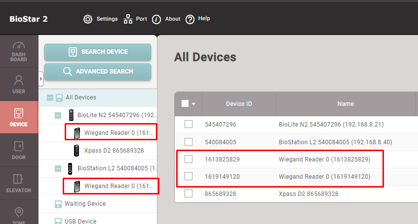 Biotar 2 can add a wiegand reader under the connected BioStar 2 devices. From BioStar 2 v2.8.5, you can add Wiegand devices as a TA device in BioStar 2 TA Registered device list.