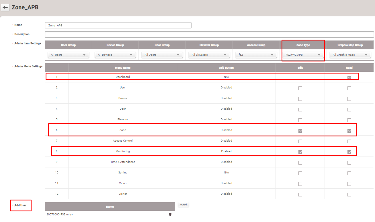 Old revisions Add to book Export to PDF Fold/unfold all Table of Contents Zone in the Admin Item Settings of the custom level 1. How to configure a custom level with access to specific zones? 2. Dash board, Monitoring and Zone menu for the custom level admin have different views from full administrators. 3. What happens to the existing custom-level admins' privilege with zones, when user upgrade BioStar 2 version to BioStar2 version 2.8.3 or higher? Book Creator Add this page to your book Book Creator Remove this page from your book Manage book (0 page(s)) Help Zone in the Admin Item Settings of the custom level BioStar 2 allows different levels of users for the administrative (operators) level. This user setting gives different access levels to each door, device etc., based on user level Each zone can be set differently based on the operator level, allowing more custom-level settings. This feature can be found in BioStar 2 Version 2.8.3 or higher 1. How to configure a custom level with access to specific zones? Setting → Account → Add Custom Level Select accessible zones Select menu (Zone, Monitoring, etc.) Add users 2. Dash board, Monitoring and Zone menu for the custom level admin have different views from full administrators. === [Zone menu] === Shown as for Full Admin Shown as for Custom level Admin === [Monitoring] === Shown as for Full Admin Shown as for Custom level Admin === [Dashboard] === Shown as for Full Admin Shown as for Custom level Admin 3. What happens to the existing custom-level admins' privilege with zones, when user upgrade BioStar 2 version to BioStar2 version 2.8.3 or higher? The existing custom level admins would have the admin setting item for 'All zones' to avoid any confusion or problems.