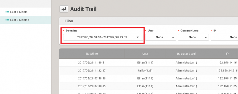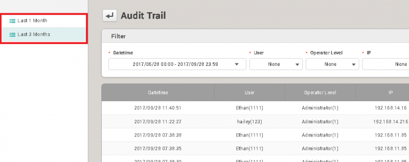 基本的に過去1ヶ月、または3ヶ月間の監査記録に対する記録が確認できます。