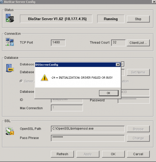 이전 판 책에 추가 PDF로 내보내기 Fold/unfold all 목차 BioStar 라이선스의 오류 메시지 BioStar 라이선스 -24 = INITIALIZATION: DRIVER FAILED OR BUSY -118 = THIS OPERATION IS ONLY ALLOWED WHILE RUNNING LOCAL MODE, NOT DRIVESHARE CLIENT MODE 책 생성기 내 책으로 이 페이지 추가 책 생성기 내 책에서 이 페이지 제거 책 관리 (0 페이지) 도움말 BioStar 1, 라이선스 BioStar 라이선스의 오류 메시지 BioStar 라이선스 BioStar 라이선스는 USB 동글을 사용하지 않고 BioStar Standard의 기능을 사용할 수 있도록 합니다. 이 소프트웨어 라이선스는 BioStar 1.62 이후 버전에서 지원됩니다. 이 문서는 BioStar 라이선스를 활성활할 때 발생할 수 있는 오류 메시지와 해결 방법에 대해 설명합니다. -24 = INITIALIZATION: DRIVER FAILED OR BUSY CrypKey License 서비스가 정상적으로 실행되지 않아서 발생하는 오류 메시지입니다. 해당 서비스가 관리자 권한으로 실행되고 있는지 확인하십시오. 1. C:\Program Files\BioStar\Server\Support\CrypKey License Service\ 폴더로 이동한 뒤 SetupEx.exe를 관리자 권한으로 실행하십시오. 2. 변경 사항을 적용하기 위해 시스템을 다시 시작하십시오. -118 = THIS OPERATION IS ONLY ALLOWED WHILE RUNNING LOCAL MODE, NOT DRIVESHARE CLIENT MODE BioStar 라이선스를 원격 PC에 발급할 때 권한이 충분하지 못하여 발생하는 오류 메시지입니다. 또한, CrypKey License 서비스가 관리자 권한으로 실행되지 않아도 발생합니다. 1. 원격 접속 프로그램의 접근 권한 레벨을 최고 등급으로 변경해야 합니다. 원격 접속 프로그램에서 접근 권한 레벨을 변경할 수 없다면 원격으로 접속할 PC에서 직접 BioStar 라이선스를 발급해야 합니다. 2. 1 번 단계의 방법으로 문제가 해결되지 않는다면 아래 지시에 따르십시오. 1) 제어판 > 관리 도구 > 서비스로 이동한 뒤 CrypKey License 서비스를 중지하십시오. 2) 시작 > 실행으로 이동하십시오. CMD를 입력한 뒤 cmd.exe를 실행하십시오. 명령어 창에서 sc delete “CrypKey License”를 입력한 뒤 <Enter> 키를 누르십시오. 3) C:\Program Files\BioStar\Server\Support\CrypKey License Service 폴더로 이동한 뒤 SetupEx.exe를 관리자 권한으로 실행하십시오. 4) PC를 다시 시작하십시오. 5) 사이트 코드를 발급하십시오.