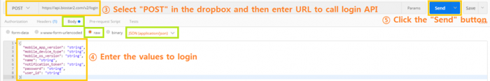 3) 드롭 박스에서 POST를 선택한 뒤 로그인 API를 호출할 URL을 입력하십시오. 로컬 API의 경우, “http://127.0.0.1:8795/v2/login“와 같이 URL을 입력하십시오.