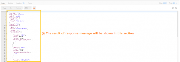 7) 응답 결과가 섹션 하단에 표시됩니다.