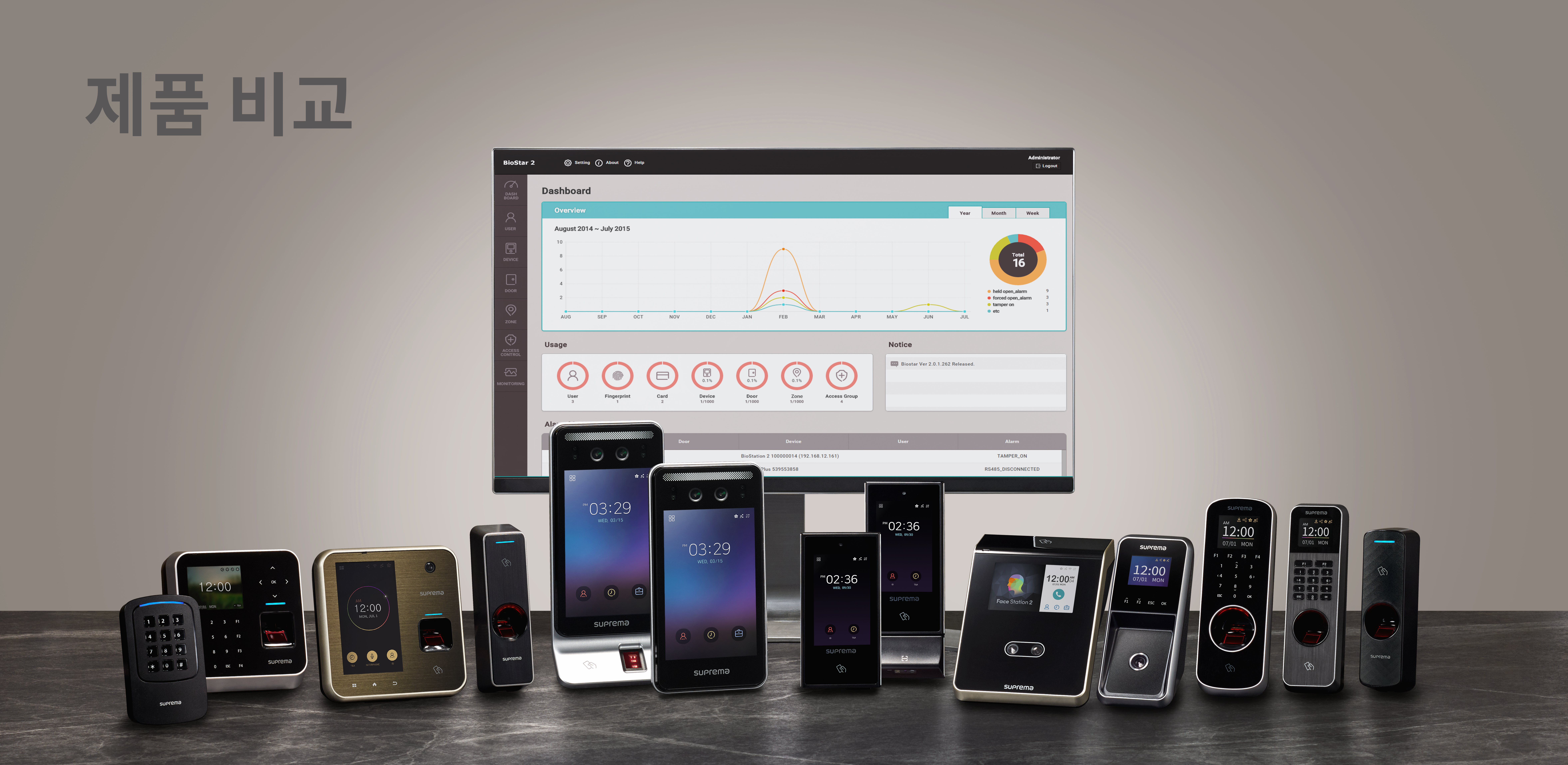 이전 판 책에 추가 PDF로 내보내기 Fold/unfold all 책 생성기 내 책으로 이 페이지 추가 책 생성기 내 책에서 이 페이지 제거 책 관리 (0 페이지) 도움말 문서의 이전 판입니다! 제품 비교 슈프리마의 제품은 지문인식 장치, 얼굴인식 장치, RFID 장치, 지문인식 및 RFID 리더와 같이 4 가지 범주로 제공됩니다. 각 장치의 기능 및 기능 목록을 참조하여 어떤 제품이 가장 적합한 지 확인하십시오. 제품 비교표