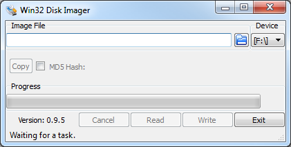 Win32 Disk Imager를 설치한 뒤 실행하십시오.