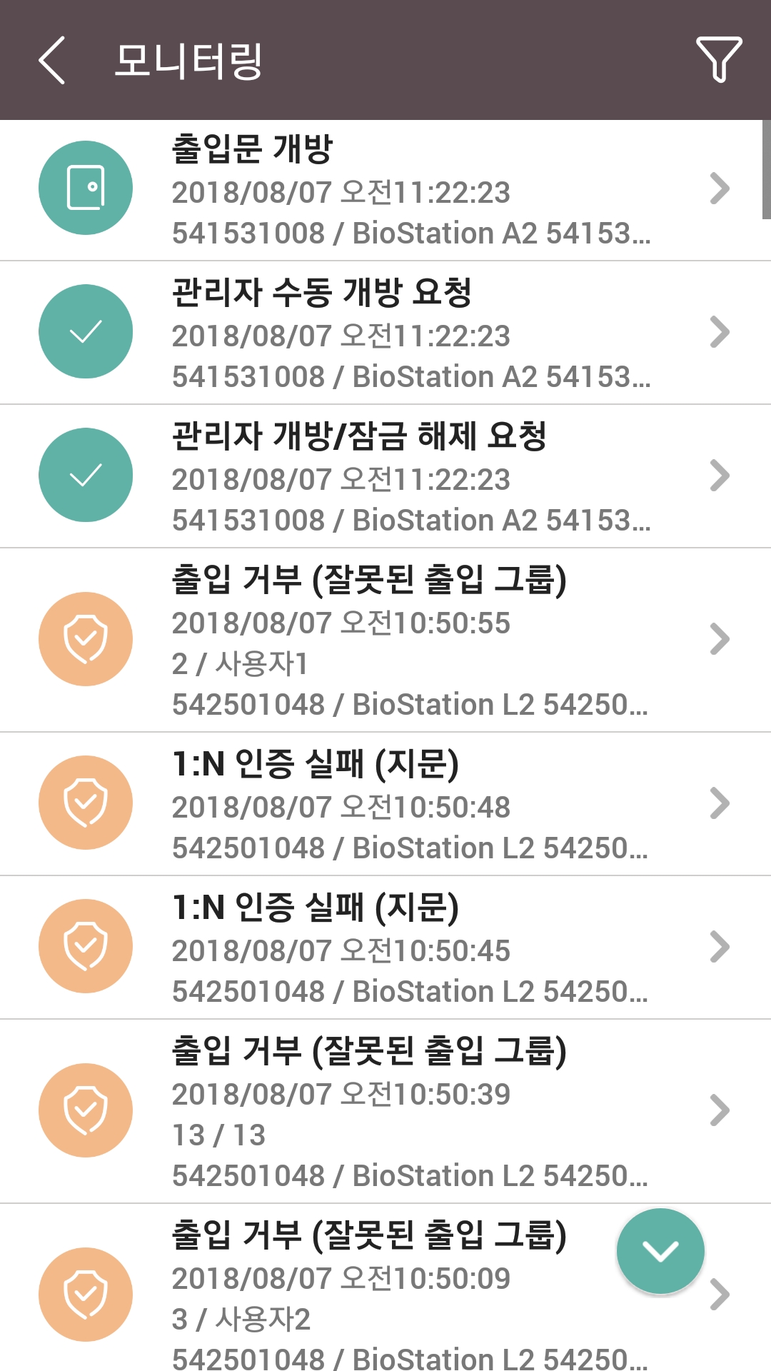 BioStar 2 모바일 앱에서 출입문 제어 및 모니터링하기