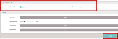 Old revisions Add to book Export to PDF Fold/unfold all Table of Contents How to Use the New Feature "Timed Anti Passback" Expectation effectiveness Major Features Precautions Execution Procedure Step 1. Click DOOR in BioStar 2 Step 2. Click ADD DOOR Step 3. Set the configuration you want to use Step 4. Step 5. After completing Step 4, you can go through the set door (if using BioStar 2 v2.9.7 or lower version) or the set device (if using BioStar 2 v2.9.8 or higher version) only after the set-"Reset Time" has passed. Book Creator Add this page to your book Book Creator Remove this page from your book Manage book (0 page(s)) Help How to Use the New Feature "Timed Anti Passback" Affected Version: BioStar v2.9.5 or above From v.2.9.5 of BioStar 2, the function “Timed Anti Passback (Timed APB)” has been introduced newly. With this new function, the user can set the reset time for anti-passback about the specific door to limit frequent access attempts to that door. With this feature, once the user authenticates on the entry device, the user cannot re-authenticate on the same entry device or the exit device connected with the entry device until the defined “Reset time” has been gone. To use this new feature, there is no need to use the paid-for versions of the BioStar 2 license since this option can be set directly in the configured door in DOOR, not the Anti-passback Zone of ZONE in BioStar 2. Expectation effectiveness This function can be expected to prevent unauthorized people from using the authorized person's authentication method to go through the door without permission. To understand it deeply, please refer to the below example case. Example Case) A case for using the new function “Timed Anti Passback.” Let's say there is two people, person A and Person B, Person A has brought one's card for authentication but Person B has forgotten the card, so Person A enters the door using Person A's card and throughs (passes) the card to person B, when this new feature “Times Anti Passback” was not applied, Person B still could access the door. However, now, due to the specific time set feature “Reset Time,” the unauthorized person can no longer enter the door using the same Person A's card until the card used passes the defined “Reset Time”. Major Features 1. Under BioStar 2 v2.9.7 or lower version, this new function can be applied to the door that consists of either “the Entry device only” or “the Entry device + the Exit device”. However, from BioStar 2 v2.9.8 or higher version, this new function can be applied to the device itself, such as “the Entry device” “the exit device” or “the Entry device + the Exit device”, NOT the door. 2. The “Timed Anti Passback” event code is supported in Event Log of Monitoring in BioStar 2. 3. Under BioStar 2 v2.9.7 or lower version, unlike the Anti-passback inside of the “Zone” menu,“Timed Anti Passback” DOES NOT support the “Bypass Group” function. Example) Bypass Group function of Anti-passback in ZONE However, from BioStar 2 v2.9.8 or higher version, “Timed Anti PassBack” function also supports the “Bypass Group” function. 4. The input unit is in minutes (min.), with a default setting of 10 minutes. Users can input a time between 0 and 60 minutes. Precautions 1. You cannot use this new function at the same time as the existing “Anti-passback” function. So, you must be careful about the 2 exceptional cases below when using the “Timed Antipass Back” function. Case 1. A case where you already use “anti-passback” in ZONE If you try to set the “Timed Anti Passback” after configuring the Anti-passback zone, you will see the error popup below. On the contrary, when you try configuring the Anti-passback zone after already setting the “Timed Anti Passback,” you will also see the error popup below. Case 2. In case you want to set “anti-passback” in DOOR If Soft APB or Hard APB in Anti PassBack, the option “Timed APB” will be automatically deactivated. Timed Anti Passback CAN NOT BE USED WITH Anti PassBack Soft APB or Hard APB. 2. Supports the Alarm Function If using BioStar 2 v2.9.7 or lower version: The alarm function Does Not support “Timed Anti Passback” yet but only supports “Anti PassBack” in the configured door. If using BioStar 2 v2.9.8 or higher version: The alarm function supports both “Timed Anti Passback” and “Anti PassBack” for the configured door. 3. If the door is set up with a wireless door lock, “Timed Anti Passback” CAN NOT be used. 4. “Timed Anti PassBack” and “Use sensor when Entry Confirmed APB” enabled features cannot be used simultaneously. Execution Procedure Step 1. Click DOOR in BioStar 2 Step 2. Click ADD DOOR Step 3. Set the configuration you want to use You can select the “Entry device only” or the “Entry device + Exit device” depending on your environment. Step 4. If using BioStar 2 v2.9.7 or lower version : Enable “Timed APB” and set the applicable “Reset Time” in Timed Anti PassBack. After completing it, click Apply. After completing it, if you want set “Bypass Group”, select some specific access groups in “Bypass Group” And then, if you want to set the Alarm for “Timed Anti PassBack”, configure the alarm by clicking the Add button. If completing all settings, click Apply. Step 5. After completing Step 4, you can go through the set door (if using BioStar 2 v2.9.7 or lower version) or the set device (if using BioStar 2 v2.9.8 or higher version) only after the set-"Reset Time" has passed. For example, if you set the “Reset Time” to 1 minute, you can go through the set door 1 minute only after you have passed. If you want to disable the set “Timed Anti PassBack”, please follow the below guide per the BioStar 2 version used. 1) If using BioStar 2 v2.9.7 or lower version, : Disable “Timed APB” and click Apply. 2) If using BioStar 2 v2.9.8 or higher version, : Select “No device” a