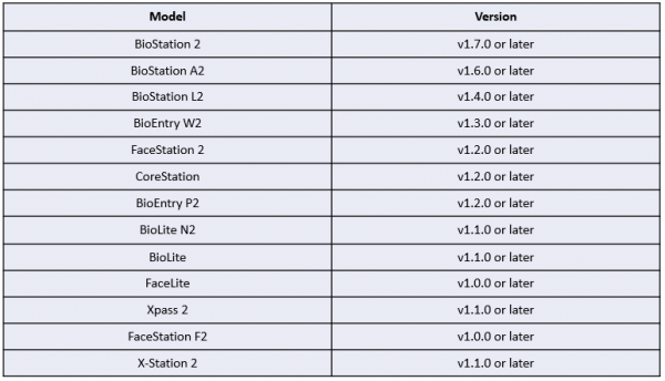 Old revisions Add to book Export to PDF Fold/unfold all The number of access group and access level Before BioStar 2.7.0, BioStar 2 was limited to 128 Access groups and Access levels. From BioStar 2.7.0, BioStar 2 can create access groups and access levels infinitely without any restriction. BioStar 2 allows you to create infinite number of Access group, but this number is limited by the device FW’s and the number is different for each FW. FW list which can accommodate up to 2048: Others including Entry devices with firmware version V2.x can accommodate up to 128 access groups Sync error occurs when the number of Access Groups for the FW exceeds its limit.