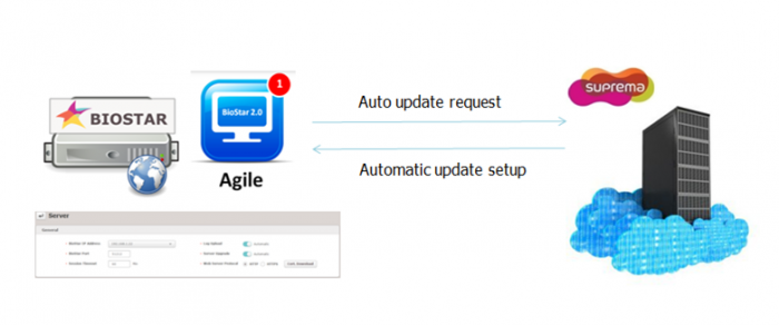 BioStar 2 server version can be updated to the latest version automatically at the time of new version release, (BioStar 2 server needs to be connected to the Internet.) Users can expect latest bug fix and more stabilized performance, and it can help installers and system managers to save a great amount of time which was necessary to visit a remote customer site and just conduct a system update.